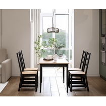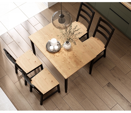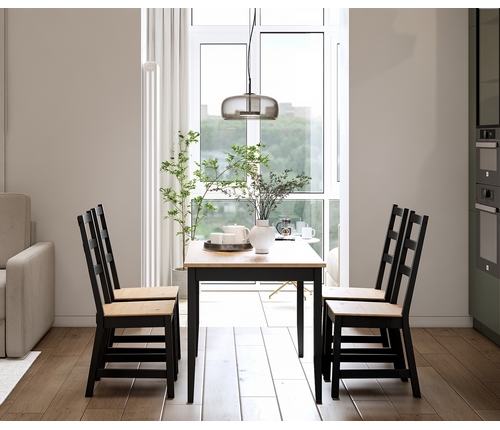 В комплект входят четыре стула Нонбург и обеденный стол Лым, которые вместе образуют гармоничное пространство для приема пищи и отдыха.