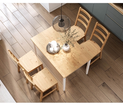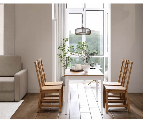 Комплект включает в себя четыре стула Нонбург и обеденный стол Лым, которые вместе создадут гармоничное пространство для приема пищи и отдыха.