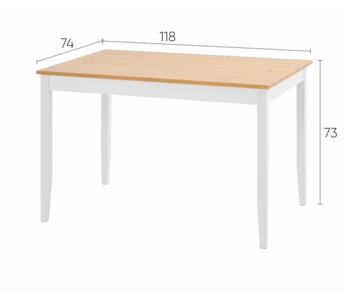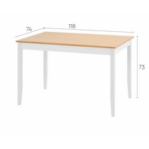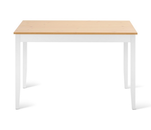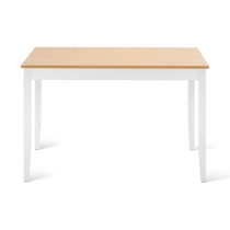 Прямоугольный обеденный стол Лым создает теплую и привлекательную атмосферу благодаря сочетанию белого корпуса и столешницы в светлом оттенке коричневого.