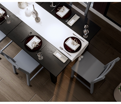 Раздвижная конструкция позволяет комфортно разместить гостей, а затем вернуть стол в компактное состояние.