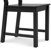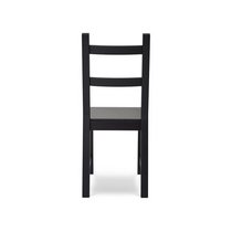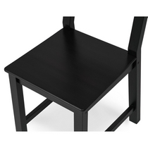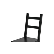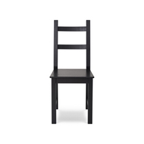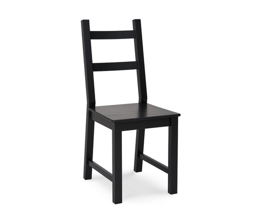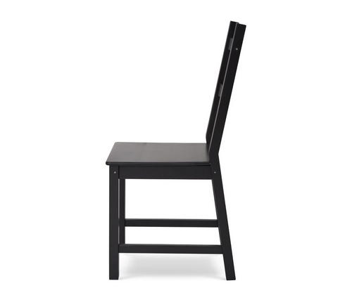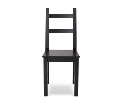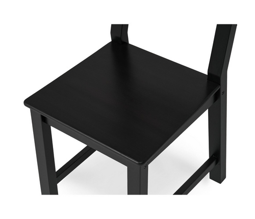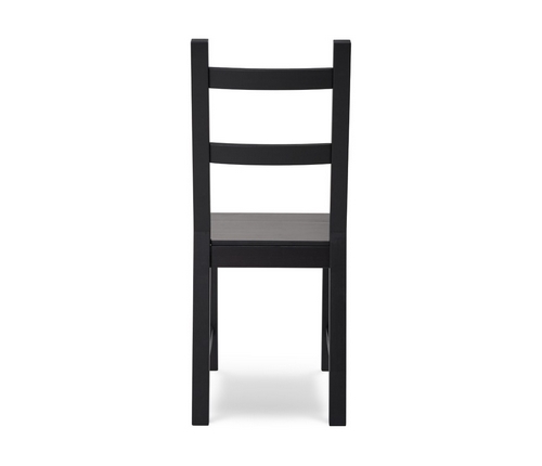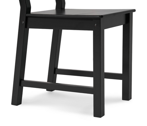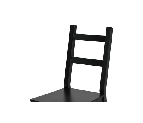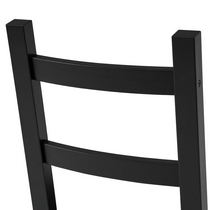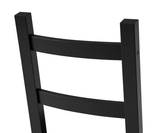 Спинка стула состоит из двух горизонтальных перекладин, а выступающие концы вертикальных стоек придают ему оригинальность.