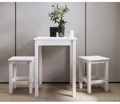 В комплект входят два белых табурета Одра и небольшой белый стол Шонди, образующие вместе уютное пространство для приема пищи и отдыха.