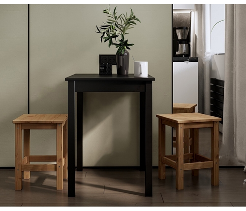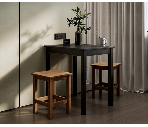 В комплект входят два коричневых табурета Одра и небольшой черный стол Шонди, образующие вместе уютное пространство для приема пищи и отдыха.