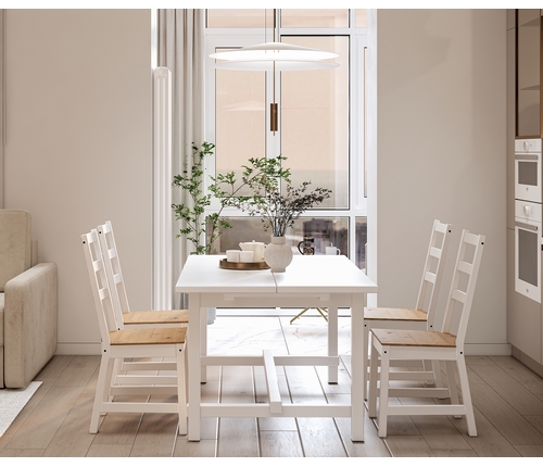 Обеденный комплект - стол Толысь и 4 стула Нонбург (белый, светло-коричневый).