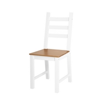 Корпус стула выполнен в белом цвете в сочетании с сиденьем в светло-коричневом оттенке.