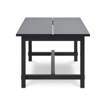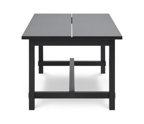 Обеденный стол Толысь с прямоугольной столешницей состоящей из двух продольных панелей и массивными ножками с поперечными перекладинами рассчитан на комфортное размещение до 6 человек.