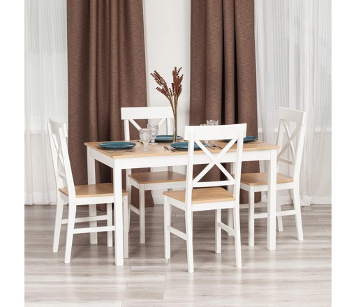 Особенности: Стильный обеденный комплект Хадсон идеально дополнит интерьер. Будет отлично смотреться в гостиной, кухне или столовой. Не требует специального ухода, не деформируется при изменении температуры и попадания влаги. Будет идеальным решением для квартиры и загородного дома. Рассчитан на четырех человек. Состоит из стола и четырёх стульев. Мебель поставляется в разобранном виде, необходима несложная сборка. Инструкция прилагается. Вес упаковки - 35 кг.