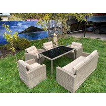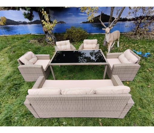 Обеденный комплект из искусственного ротанга Сантьяго (стол, диван, 4 кресла) Greige