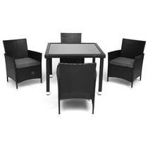 Обеденный сет (стол и 4 стула) (mod. 210036) (Черный) из ротанга