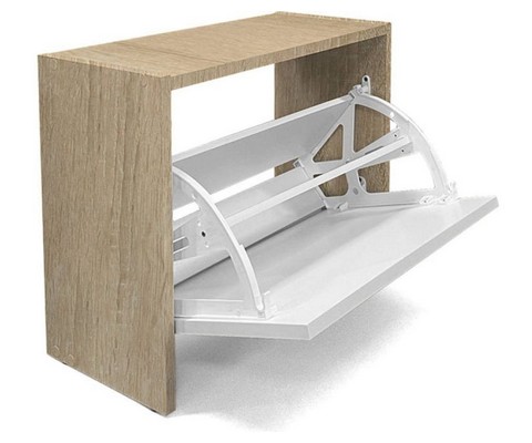 Обувница Лаком-1 дуб сонома / белый вмещает до 4 пар туфель, ботинок.