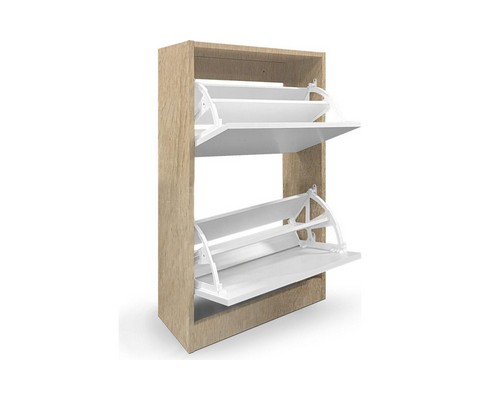Обувница Лаком-2 дуб сонома / белый вмещает до 8 пар туфель, ботинок.