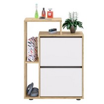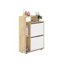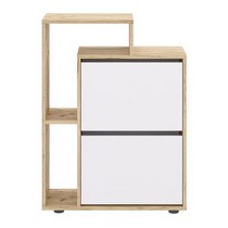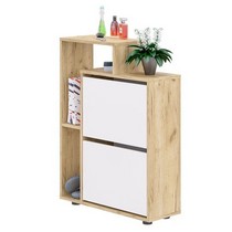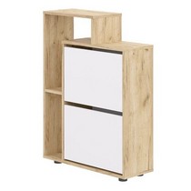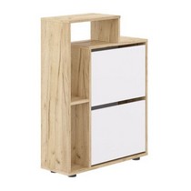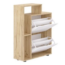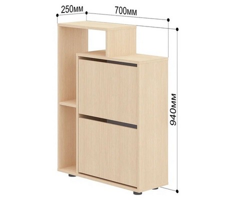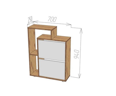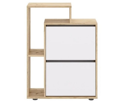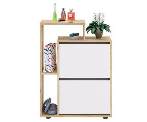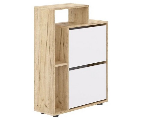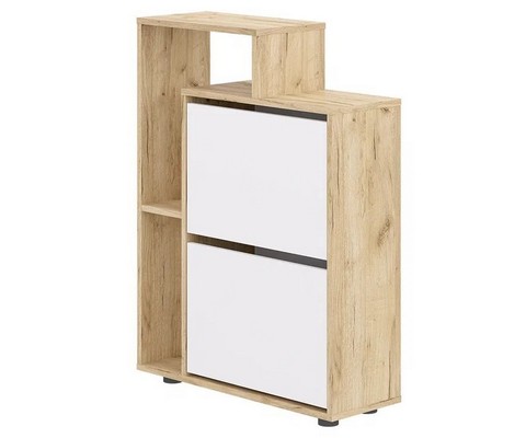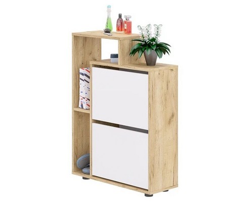 Обувница ОБ-6 крафт золотой / белый имеет 2 уровня загрузки по 2 ряда обуви + открытые ниши для мелочей.