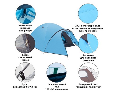 Внутренний тент изготовлен из дышащего дышащий полиэстера.