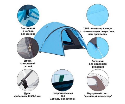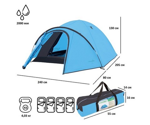 Палатка туристическая 4-х местная Green Glade Nida 4 местная куполообразная с компактным тамбуром.