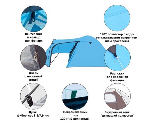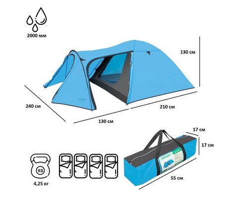 Палатка туристическая Green Glade Zoro 4-х местная куполообразной формы.