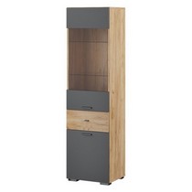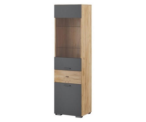 Закрытый шкаф-пенал с 2-мя стеклянными полками, ящиком и нишей за дверцей.