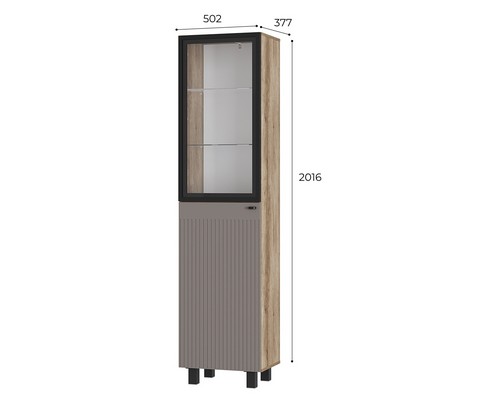 Пенал Олива ПН-03 оборудорван 2 стеклополкками, 3 деревянными полками.