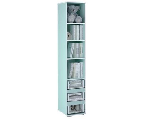 Пенал оснащен тремя выдвижными ящиками и открытыми полками.
