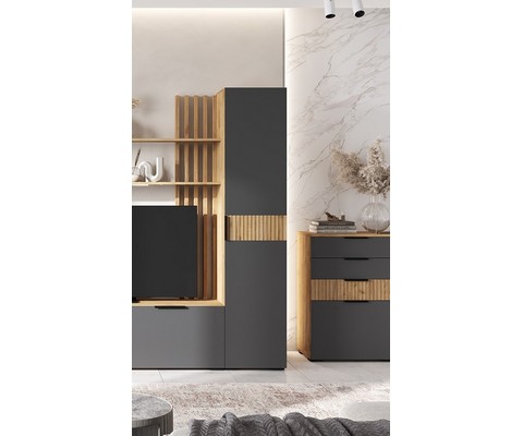 Пенал Роджина 400 (графит, дуб крафт) компактный и функциональный элемент мебели. Подходит для хранения различных вещей. Узкий и вертикальный дизайн.