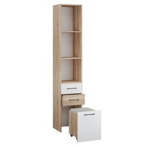 Комбинированный шкаф-пенал Денвер содержит набор полок за дверцей, 2 ящика и выдвижной пуф.