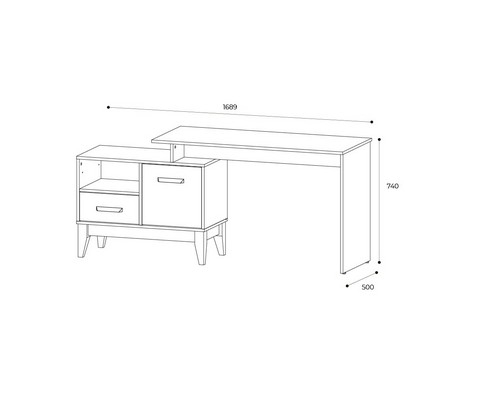 Письменный стол Скандика имеет удобную рабочую поверхность и встроенную тумбу, которая состоит из просторного отсека за дверцей, ящика и одной открытой полки.