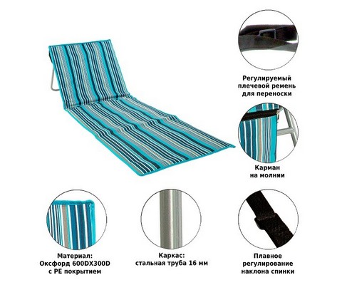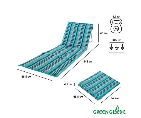 Пляжный коврик Green Glade М2301 имеет 5 регулируемых положений, что дает дополнительную опору спине.