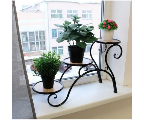 Элегантная и устойчивая подставка для комнатных растений предназначена для размещения трех цветочных горшков на разных уровнях, создавая эффектную вертикальную композицию и экономя полезное пространство.