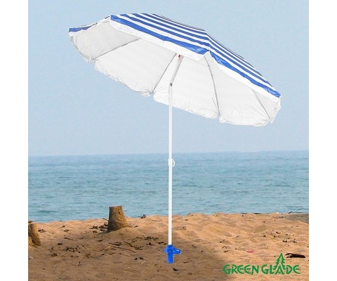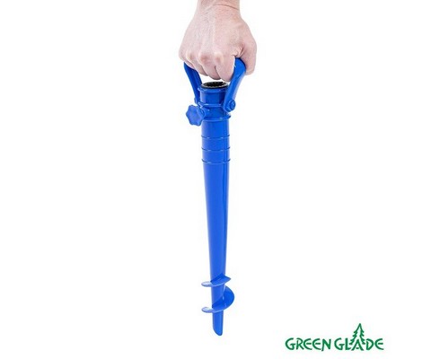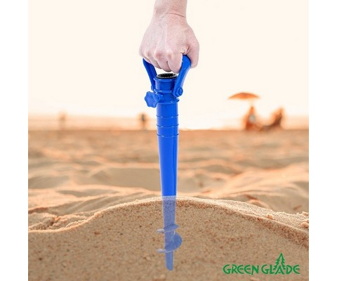 Подставка для зонта Green Glade A360 имеет форму бура, легко ввинчивается в почву или песок, надежно закрепляя зонт.
