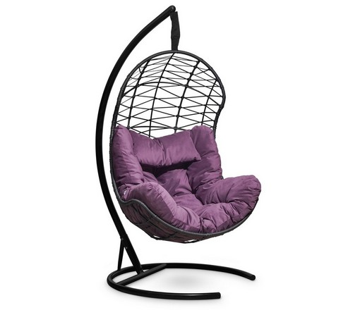 Подвесное кресло - кокон БАРСЕЛОНА ротанг (фиолетовый) с каркасом