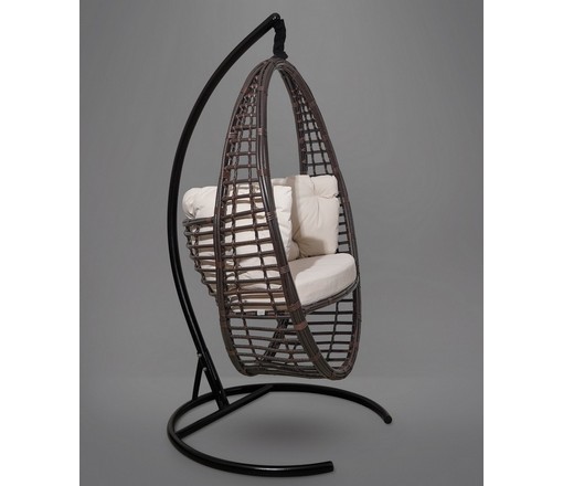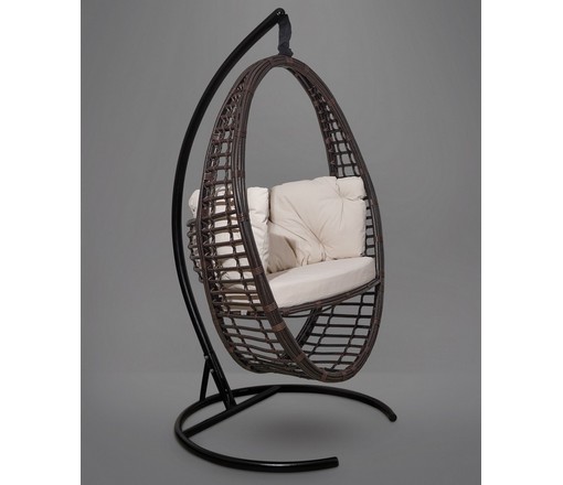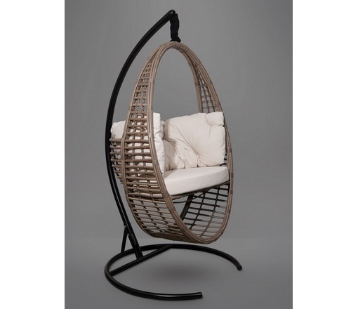 Подвесное кресло - кокон DERBENT ротанг (бежевый) с каркасом
