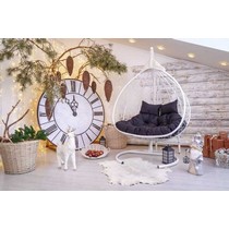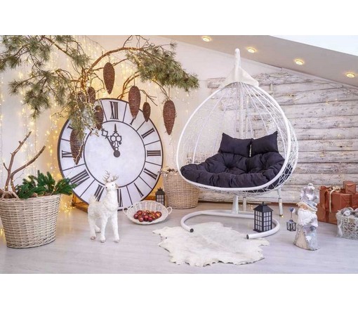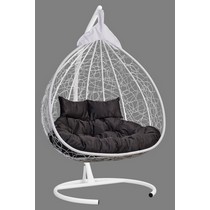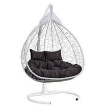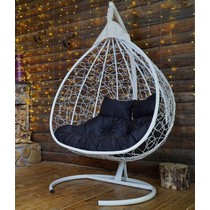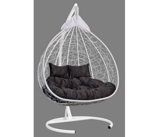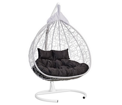 Подвесное кресло - кокон Fisht ротанг двухместное (белый/черный) с каркасом, подушка полиэстер
