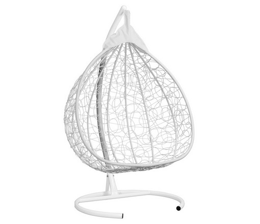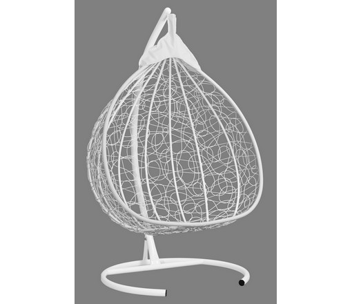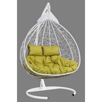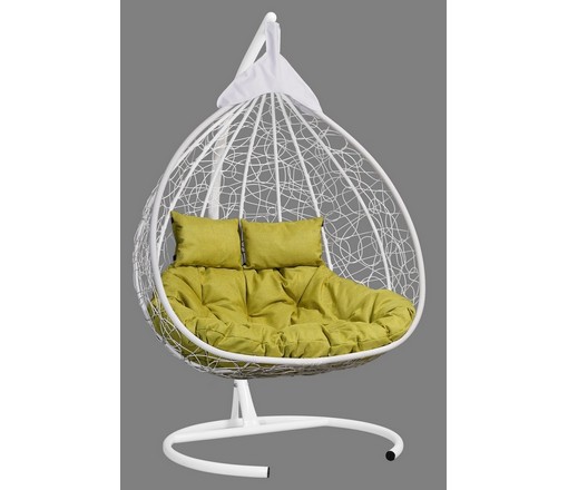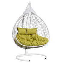 Подвесное кресло - кокон Fisht ротанг двухместное (белый/салатовый) с каркасом, подушка рогожка