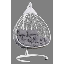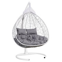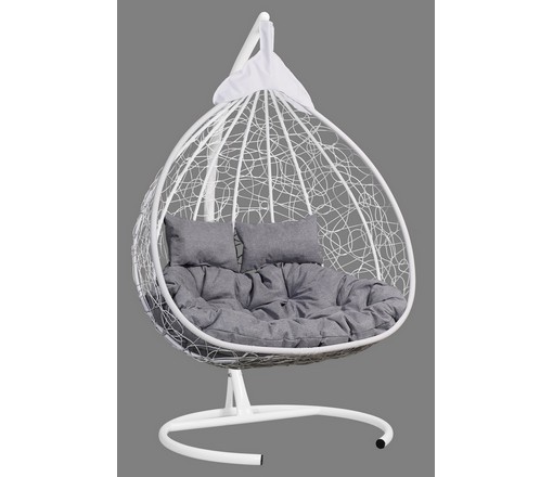 Подвесное кресло - кокон Fisht ротанг двухместное (белый/светло-серый) с каркасом, подушка рогожка