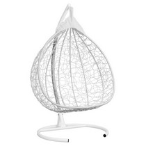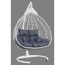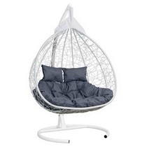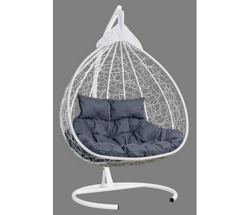 Подвесное кресло - кокон Fisht ротанг двухместное (белый/темно-серый) с каркасом, подушка рогожка