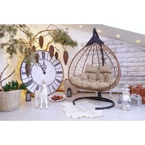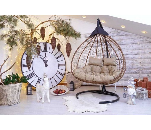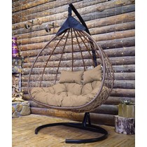 Подвесное кресло - кокон Fisht ротанг двухместное (горячий шоколад /бежевый) с каркасом, подушка полиэстер