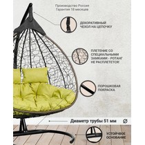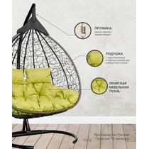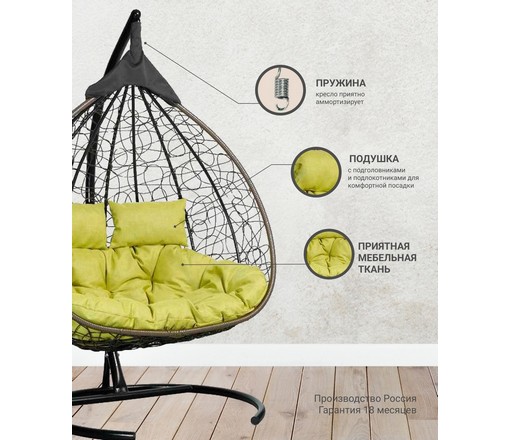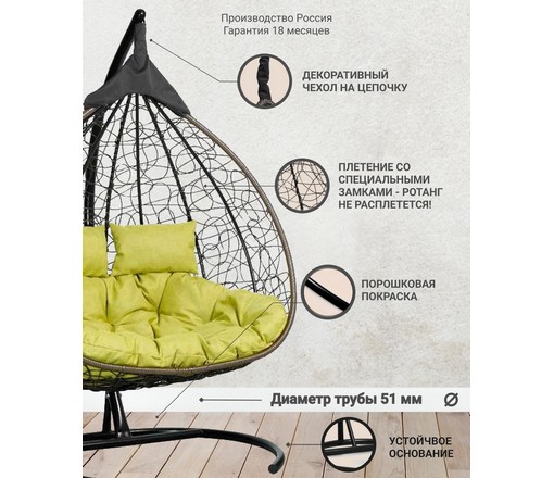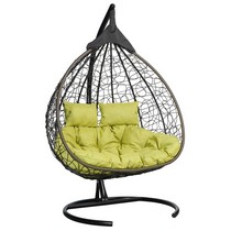 Подвесное кресло - кокон Fisht ротанг двухместное (коричневый/салатовый) с каркасом, подушка рогожка