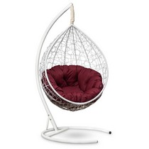 Подвесное кресло - кокон SEVILLA Verde ротанг (белый/бордовый) с каркасом