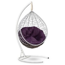Подвесное кресло - кокон SEVILLA Verde Velour ротанг (белый/фиолетовый) с каркасом