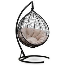 Подвесное кресло - кокон SEVILLA Verde Velour ротанг (черный/бежевый) с каркасом
