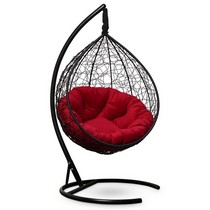 Подвесное кресло - кокон SEVILLA Verde Velour ротанг (черный/красный) с каркасом