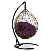 Подвесное кресло - кокон SEVILLA Verde Velour ротанг (горячий шоколад/фиолетовый) с каркасом