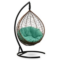 Подвесное кресло - кокон SEVILLA Verde Velour ротанг (горячий шоколад/салатовый) с каркасом