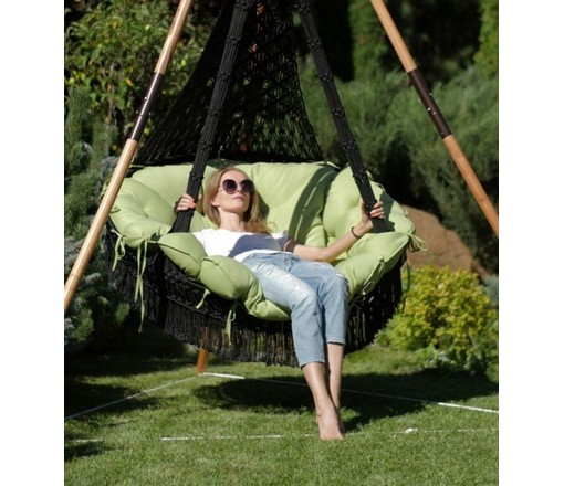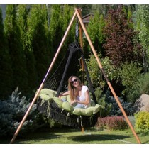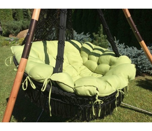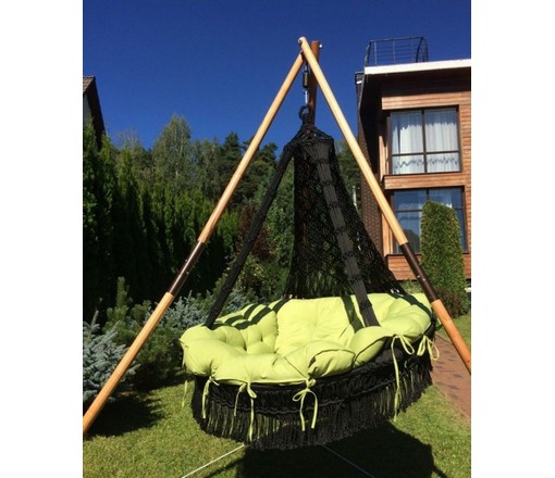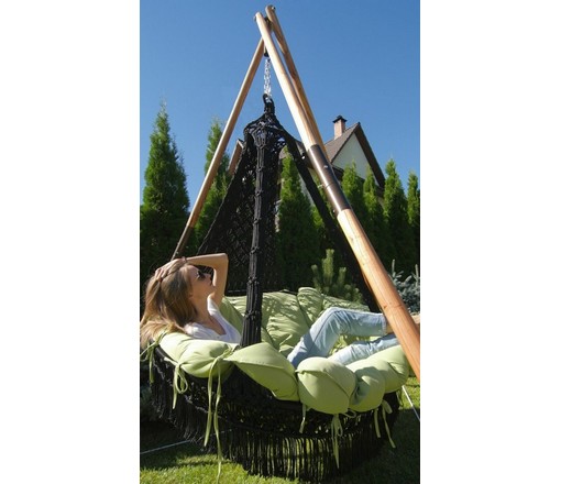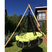 Подвесное кресло Cartagena (Картахена) черные с зеленой подушкой и деревянным каркасом Maya (Майя)