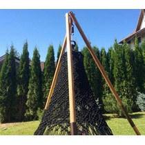 Размеры (см): диаметр кресла - 120, высота кресла - 180, длина одной стойки каркаса - 290, расстояние между стойками каркаса - 250.