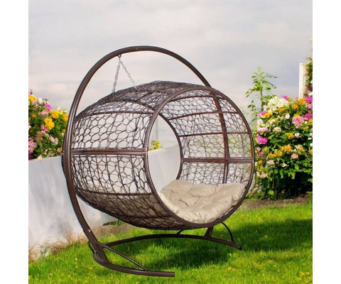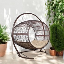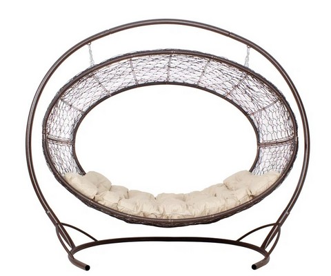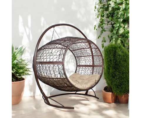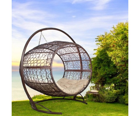 Подвесное кресло Диоген с ротангом (коричневое с бежевой подушкой)