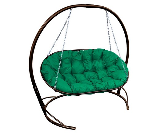 Подвесное кресло-диван Мамасан со стойкой (коричневое с зеленой подушкой)