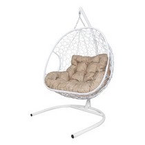 Подвесное кресло ДЛЯ ДВОИХ Home с ротангом (белое, подушка Лен)