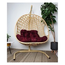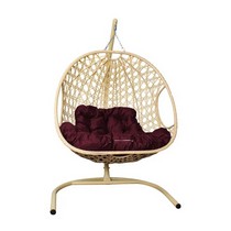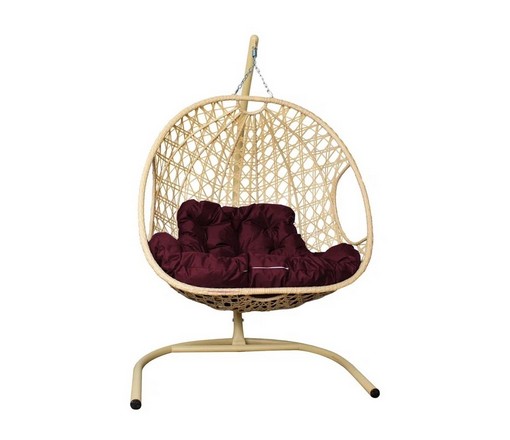 Подвесное кресло ДЛЯ ДВОИХ Люкс с ротангом (бежевое с бордовой подушкой)