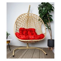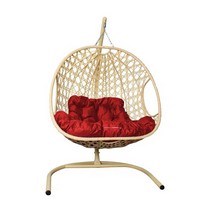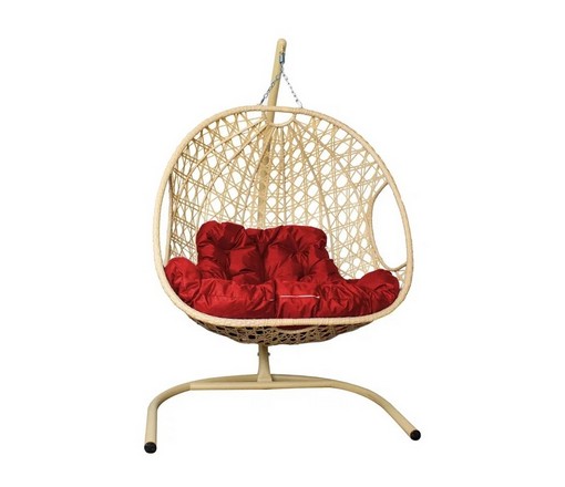 Подвесное кресло ДЛЯ ДВОИХ Люкс с ротангом (бежевое с красной подушкой)
