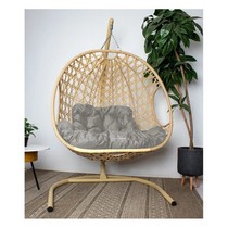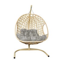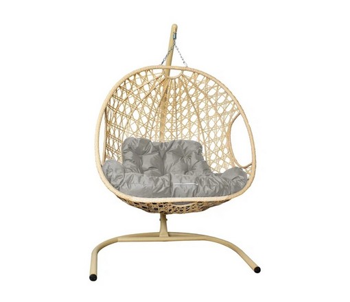 Подвесное кресло ДЛЯ ДВОИХ Люкс с ротангом (бежевое с серой подушкой)